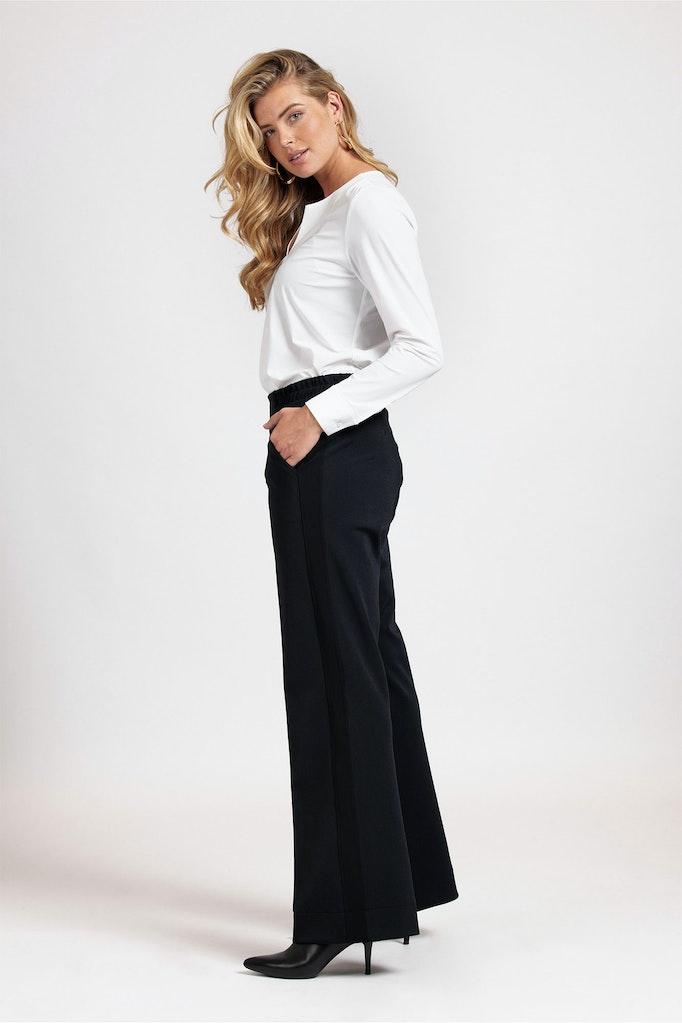Ontdek de perfecte combinatie van stijl en comfort met de Rikki shiny bnd trousers van STUDIO ANNELOES. Deze prachtige zwarte broek is speciaal ontworpen voor de modebewuste vrouw die waarde hecht aan zowel elegantie als gemak. Met zijn tijdloze kleur en verfijnde uitstraling is dit item een must-have voor elke garderobe.