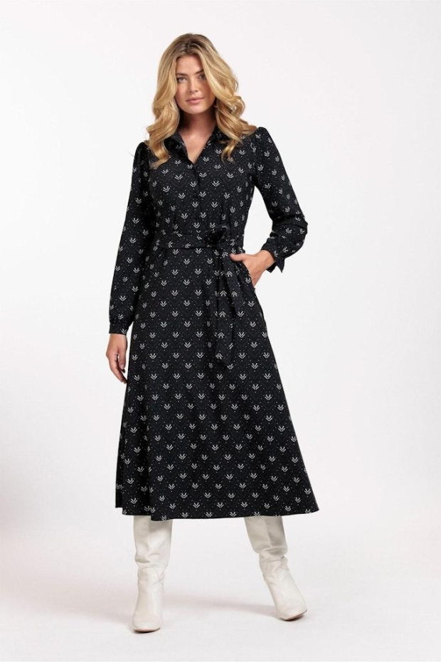 Ontdek de perfecte aanvulling op jouw wintergarderobe met de Clarissa long wallpaper dress van STUDIO ANNELOES. Deze stijlvolle jurk, uitgevoerd in een klassieke zwarte kleur met subtiele aubergine accenten, belooft niet alleen een elegante uitstraling maar ook een comfortabele pasvorm voor elke gelegenheid tijdens de koudere maanden.