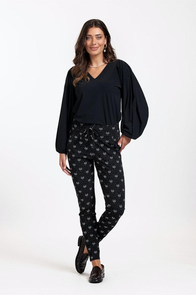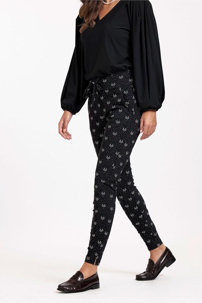 Ontdek de perfecte combinatie van stijl en comfort met de Stairdown wallpaper trousers van STUDIO ANNELOES. Deze elegante broek, uitgevoerd in een tijdloze zwarte kleur met subtiele aubergine accenten, is een must-have voor elke garderobe. Ontworpen voor de modebewuste vrouw die waarde hecht aan zowel uitstraling als gemak.