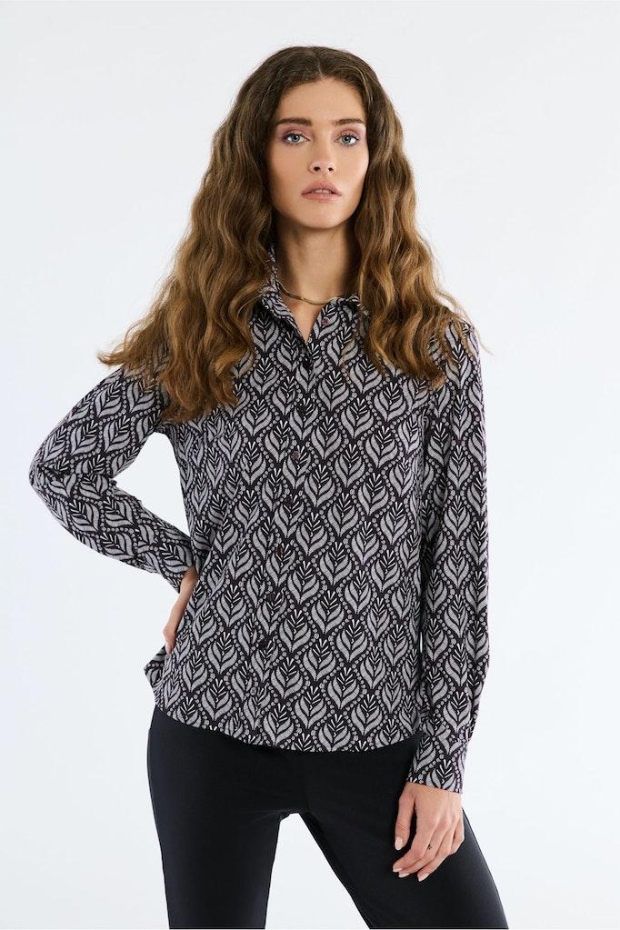 Ontdek de stijlvolle charme van de Bobby wallpaper blouse van STUDIO ANNELOES, perfect voor elke dame die haar garderobe wil verrijken met een vleugje elegantie. Deze prachtige blouse, uitgevoerd in een diepe aubergine kleur, combineert moeiteloos comfort met een modieus design, waardoor het een must-have is voor de wintermaanden.