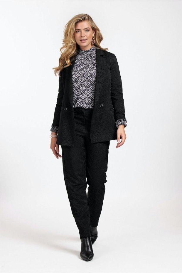 Ontdek de perfecte combinatie van stijl en comfort met de Sence orn. jacquard blazer van STUDIO ANNELOES. Deze elegante damesblazer, uitgevoerd in tijdloos zwart, is jouw ideale partner voor zowel formele gelegenheden als casual dagen. Met zijn verfijnde jacquard patroon voegt deze blazer een vleugje klasse toe aan elke outfit.
