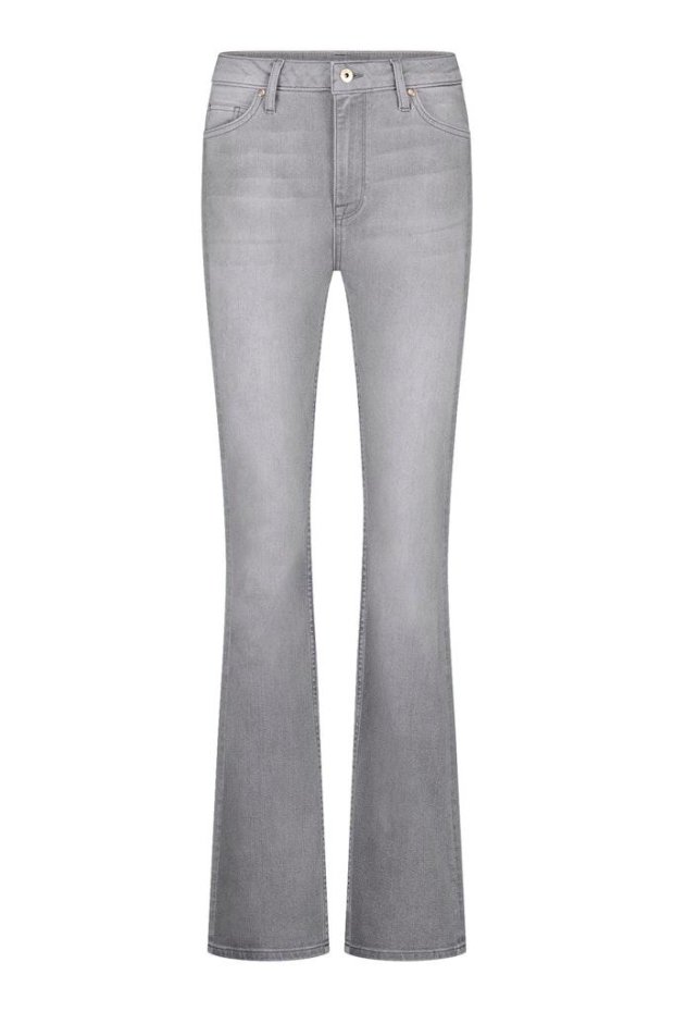 Ontdek de perfecte aanvulling op jouw zomerse garderobe met de Belle grey denim trousers van STUDIO ANNELOES. Deze stijlvolle lichtgrijze jeans, met een flatterend flare model, is jouw ideale partner voor zowel casual als chique gelegenheden. Voel je comfortabel en modieus met deze must-have voor de zomer van 2024.