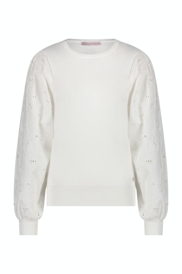 Studio Anneloes Deana flower broderie pullover 09433 1100 off white