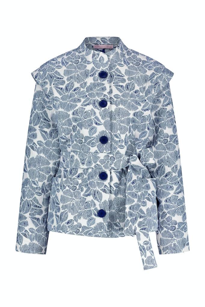 Ontdek de perfecte aanvulling op jouw zomergarderobe met het Suus jacquard jacket van STUDIO ANNELOES. Dit stijlvolle damesjack, uitgevoerd in een diepe donkerblauwe kleur met subtiele off-white accenten, belooft niet alleen een modieuze uitstraling maar ook een comfortabele pasvorm. Ideaal voor de zomerse dagen van 2024!