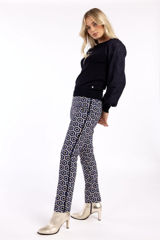 Studio Anneloes Anke graphic trousers 09470 1369 cappu/dark blue