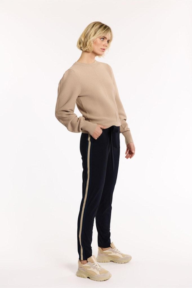 Studio Anneloes Kat bonded tape trousers 09487 6900 dark blue