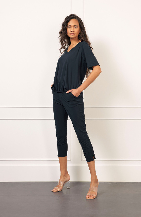 Maak kennis met de stijlvolle Billy trousers van STUDIO ANNELOES, een must-have voor elke modebewuste vrouw. Deze capri broek in een prachtige donkerblauwe tint is de perfecte combinatie van comfort en stijl voor de zomer van 2024. Of je nu een dag op kantoor hebt of een avondje uit, met deze broek ben je altijd goed gekleed.