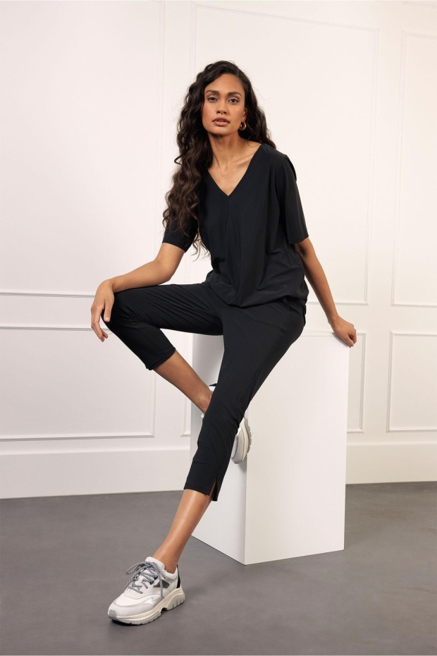 Ontdek de stijlvolle en comfortabele Billy trousers van STUDIO ANNELOES, perfect voor de zomer van 2024. Deze zwarte capri broek is een must-have voor elke modebewuste vrouw die waarde hecht aan zowel stijl als gemak.