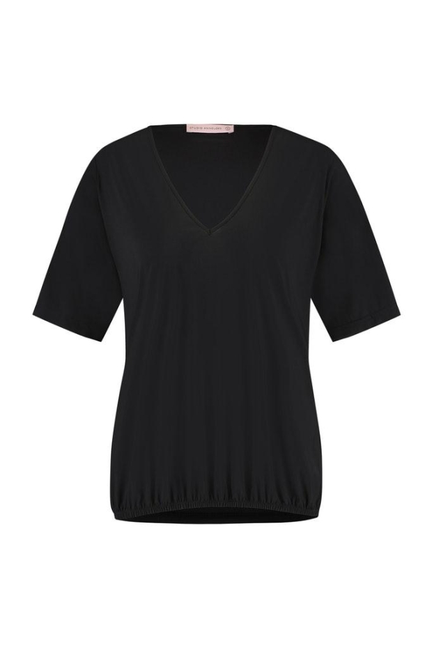 Maak kennis met het Vicky shirt van STUDIO ANNELOES, een stijlvolle toevoeging aan je zomergarderobe. Dit zwarte T-shirt met korte mouwen combineert comfort met een tijdloze elegantie, perfect voor elke gelegenheid.