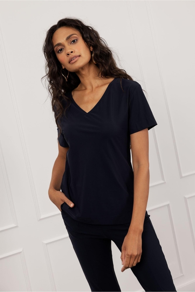 Ontdek de tijdloze elegantie en het comfort van het Roller shirt van STUDIO ANNELOES. Dit prachtige dames T-shirt in donkerblauw is een must-have voor elke garderobe, perfect voor zowel een casual als een chique look. Met zijn korte mouwen en hoogwaardige afwerking is dit shirt een toonbeeld van stijl en kwaliteit.