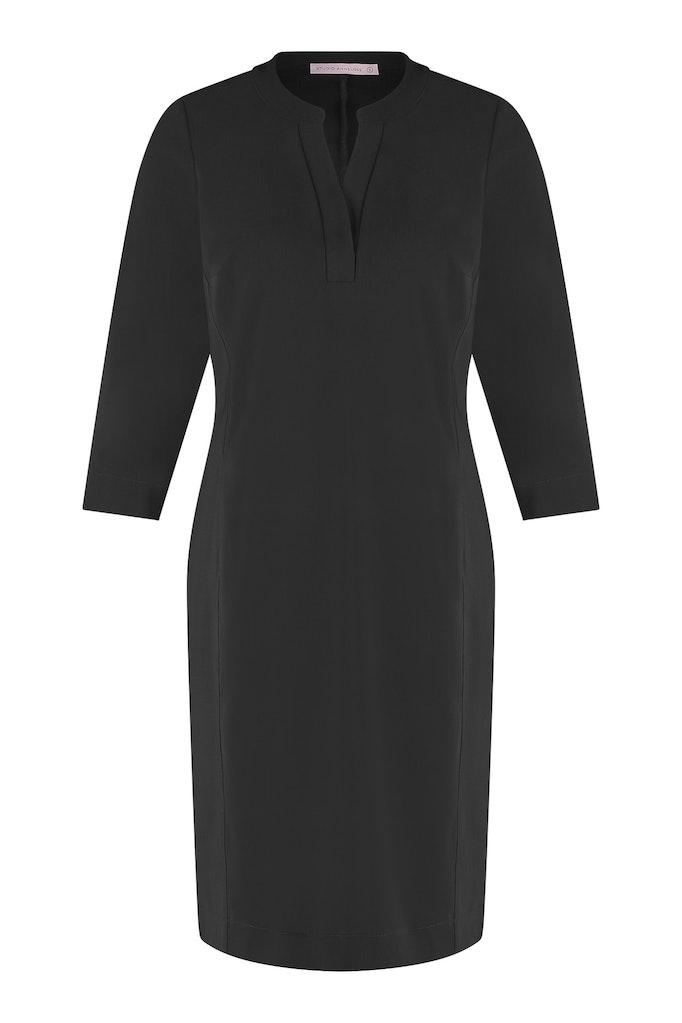 - Deze jurk is uitgevoerd in een klassieke zwarte kleur, waardoor hij eenvoudig te combineren is met je favoriete accessoires.