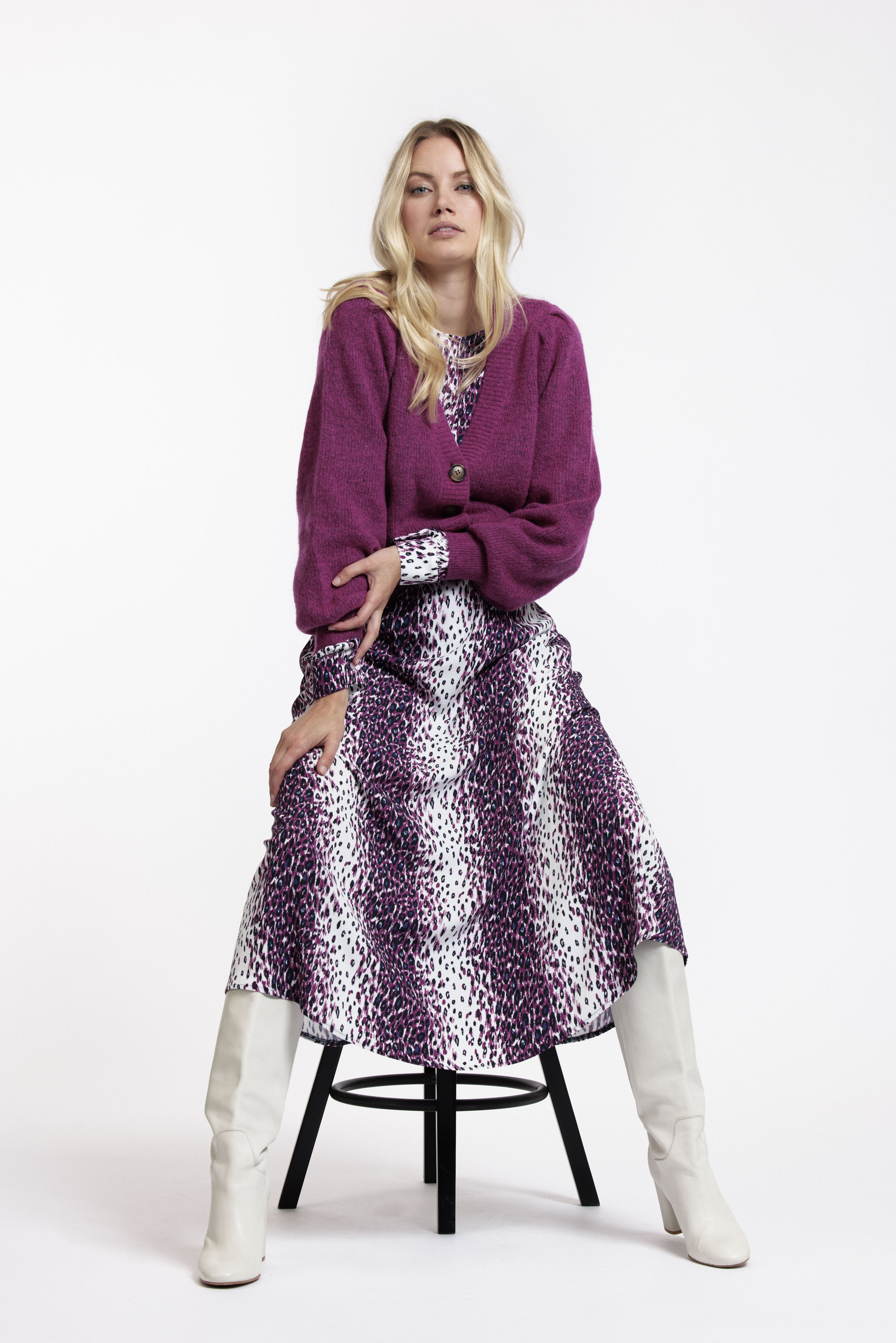 - Uitgevoerd in een prachtige off white kleur met magenta accenten, waardoor het een opvallend stuk in je garderobe wordt.