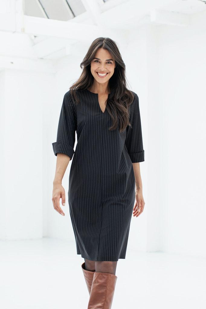 - Met zijn tijdloze streepdessin en stijlvolle design, is de Caro pinstripe dress een perfecte aanvulling op elke garderobe.