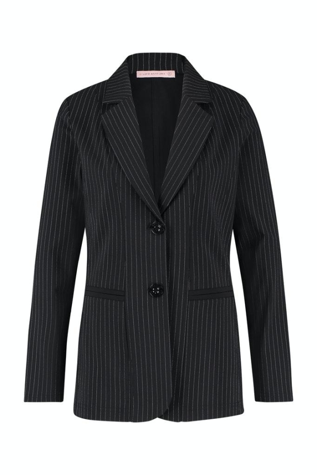 Studio Anneloes Jody pinstripe blazer 94746 9011 black/off white