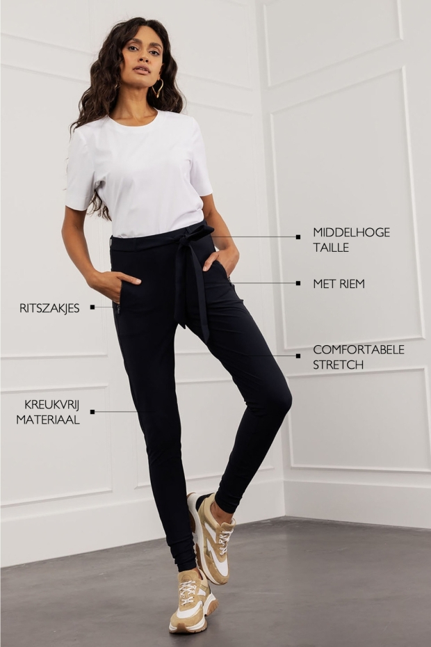Maak kennis met de stijlvolle en comfortabele MARGOT TROUSER van STUDIO ANNELOES. Deze elegante zwarte broek is een tijdloze toevoeging aan elke garderobe. Ontworpen met het oog op zowel mode als functionaliteit, is deze broek perfect voor vrouwen die waarde hechten aan stijl en comfort.
