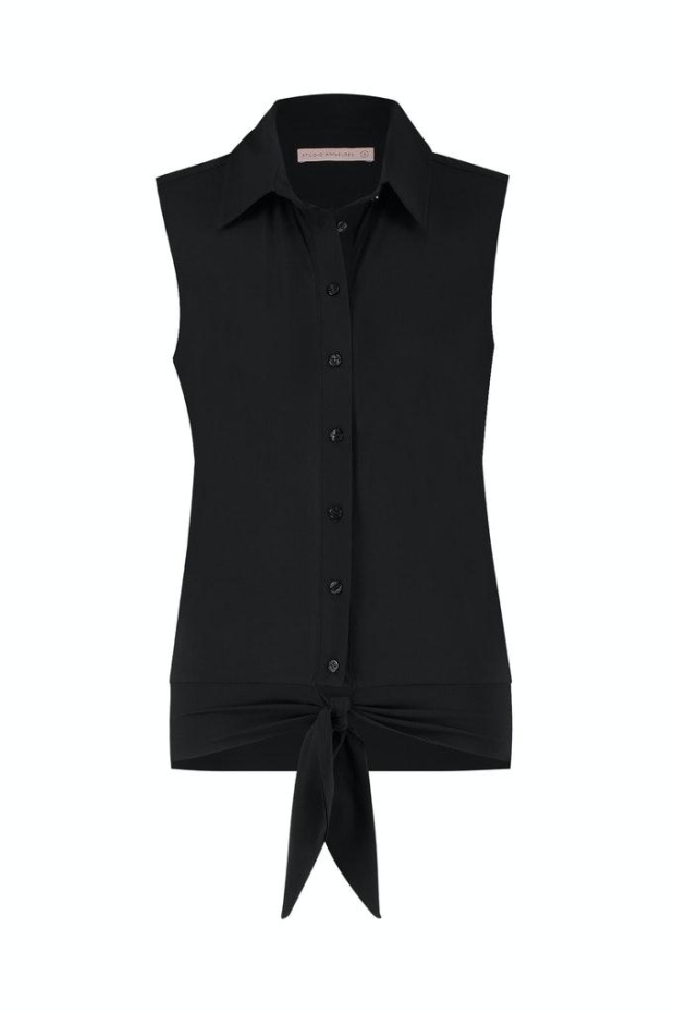 Voeg een vleugje elegantie toe aan je garderobe met de stijlvolle Pippa sl blouse van STUDIO ANNELOES. Deze prachtige zwarte blouse, perfect voor de zomer, combineert moeiteloos comfort met een tijdloze uitstraling. Met zijn opstaande kraag en subtiele stretch biedt het zowel stijl als gemak voor elke gelegenheid.