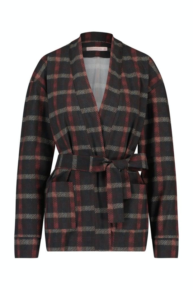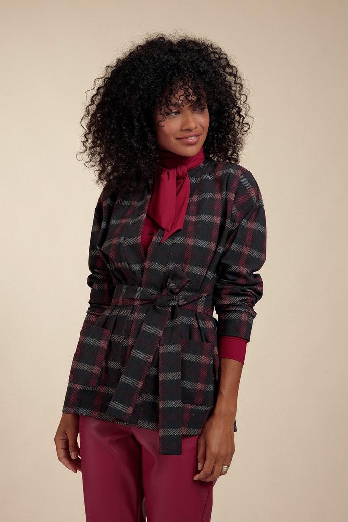 Studio Anneloes Reva big check blazer 06569 3898 blackberry/antraciet