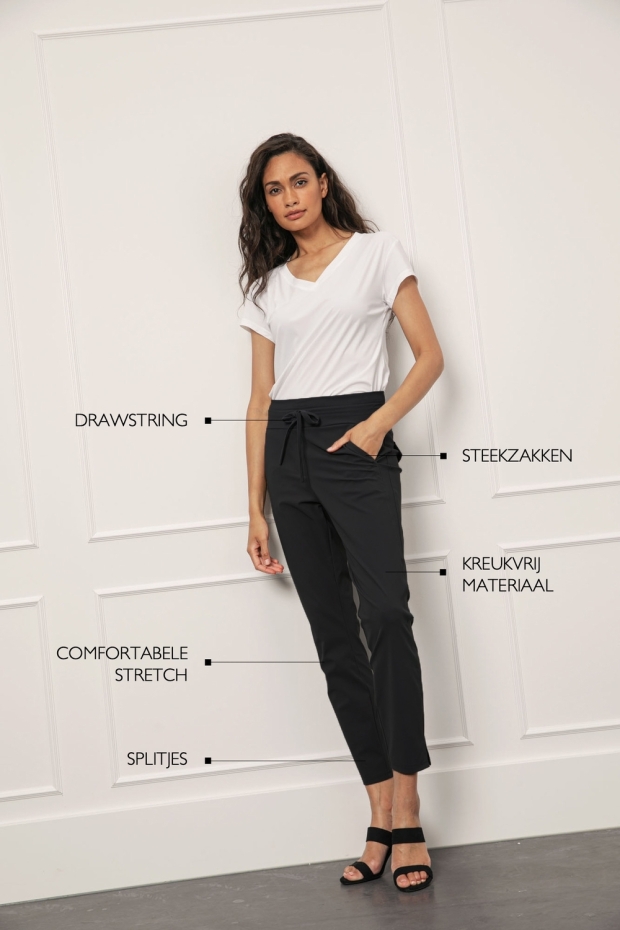 - De tijdloze zwarte kleur maakt deze broek uiterst veelzijdig en geschikt voor elke gelegenheid.