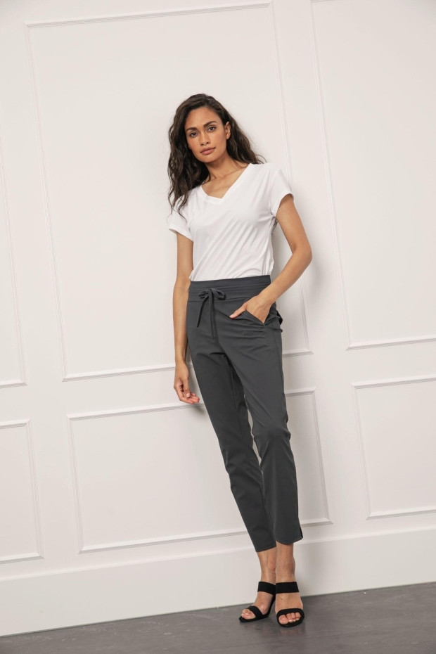 Ontdek de perfecte combinatie van stijl en comfort met de Startup trousers van STUDIO ANNELOES. Deze elegante broek in de tijdloze kleur antraciet is een must-have voor elke garderobe. Gemaakt van een hoogwaardige mix van polyamide en elastaan, biedt deze broek zowel flexibiliteit als duurzaamheid, ideaal voor de dynamische vrouw van vandaag.