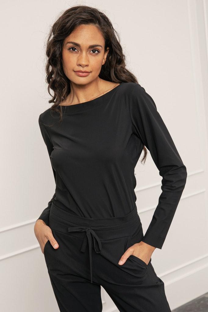 Ontdek de stijlvolle en tijdloze elegantie van het Sydney shirt van STUDIO ANNELOES. Dit prachtige zwarte T-shirt met lange mouwen is een must-have voor elke garderobe, perfect voor zowel casual als formele gelegenheden. Met zijn veelzijdige zwarte kleur en comfortabele stretchstof, biedt dit shirt eindeloze combinatiemogelijkheden.