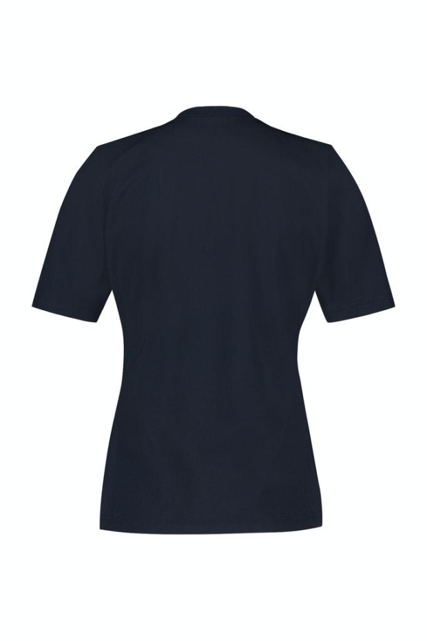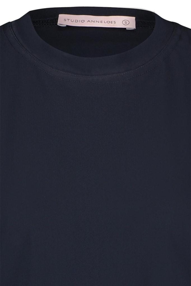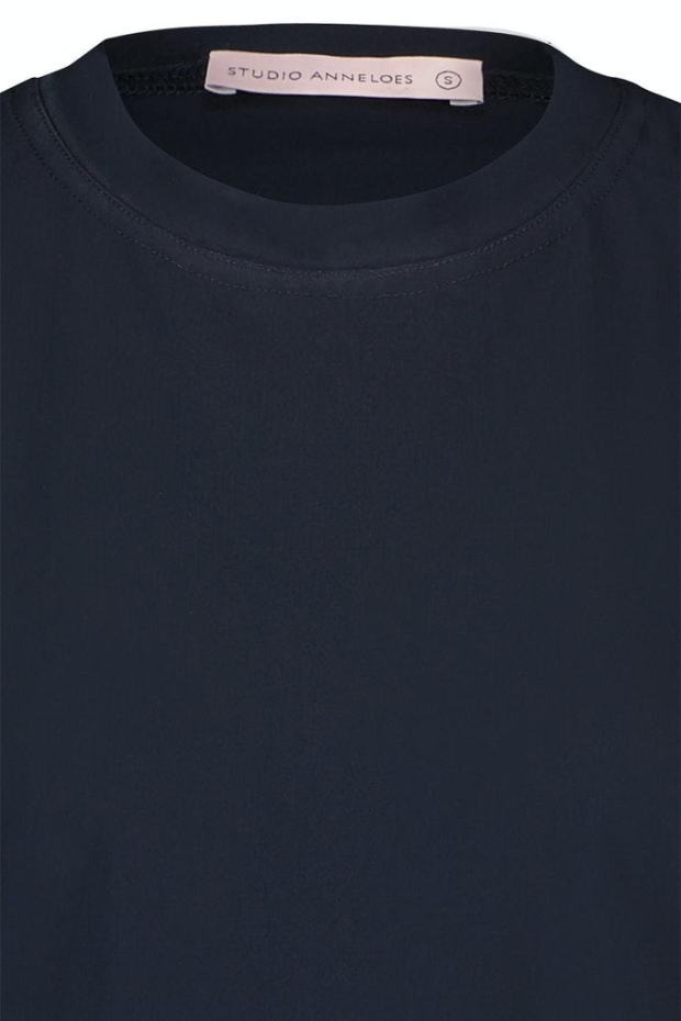 Maak kennis met de elegante Travel Tee van STUDIO ANNELOES, een must-have voor elke modebewuste vrouw. Uitgevoerd in een stijlvol donkerblauw, is dit T-shirt met korte mouw de perfecte combinatie van comfort en stijl voor de zomer.