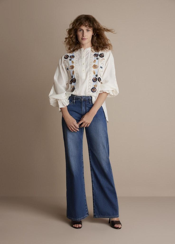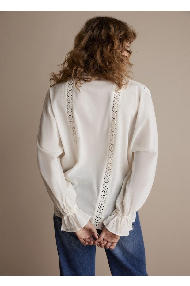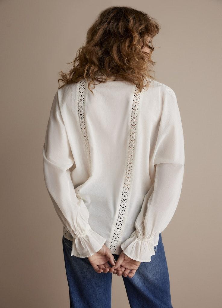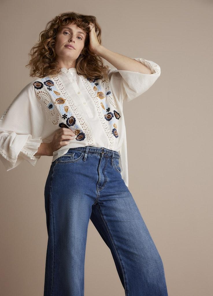 Ontdek de charme van de zomer met de SUMMUM 2s2871-11765 Blouse flower embroidery in de kleur ecru. Deze stijlvolle blouse, perfect voor elke dame die waarde hecht aan kwaliteit en stijl, belichaamt de essentie van zomerse elegantie met een vleugje bloemenpracht.