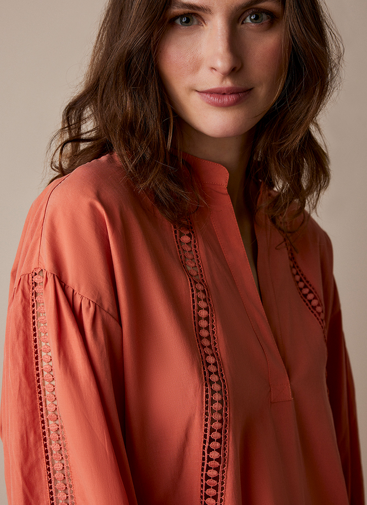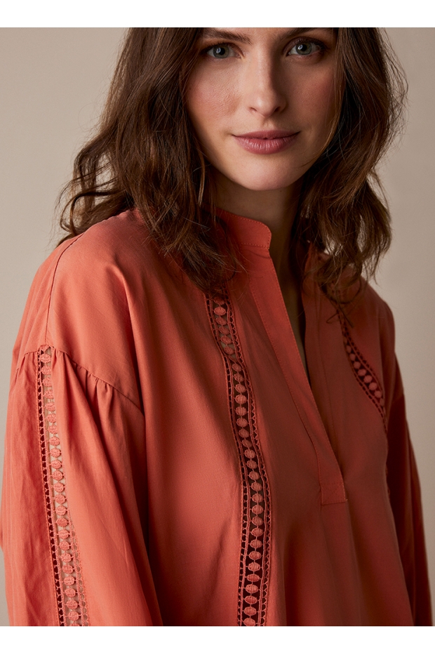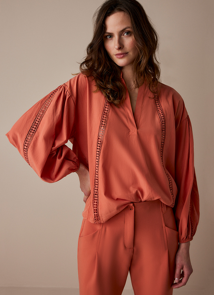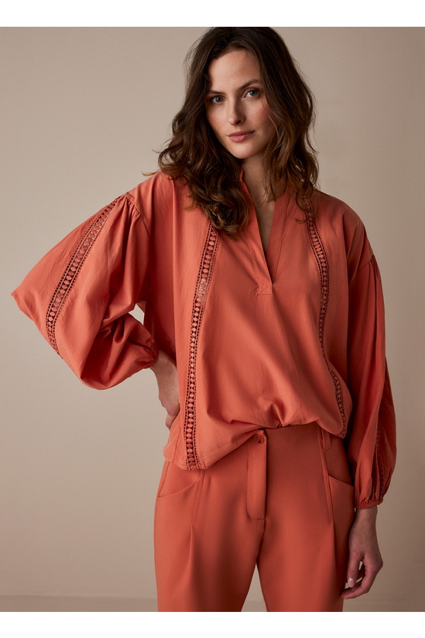 Maak kennis met de elegante charme van de SUMMUM Top lace accent tencel/cotton in de levendige kleur oranje. Deze blouse is een perfecte mix van stijl en comfort, speciaal ontworpen voor de modebewuste vrouw die waarde hecht aan zowel uitstraling als duurzaamheid. Met zijn unieke kantaccenten en de zachte combinatie van tencel en katoen, biedt deze top een ongeëvenaard draagcomfort en een stijlvolle look voor elke gelegenheid.