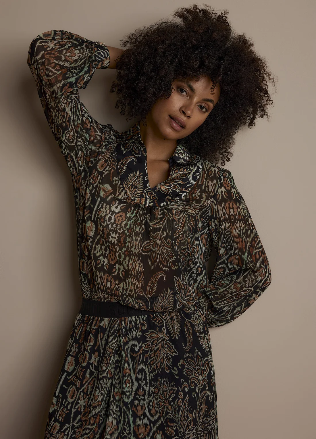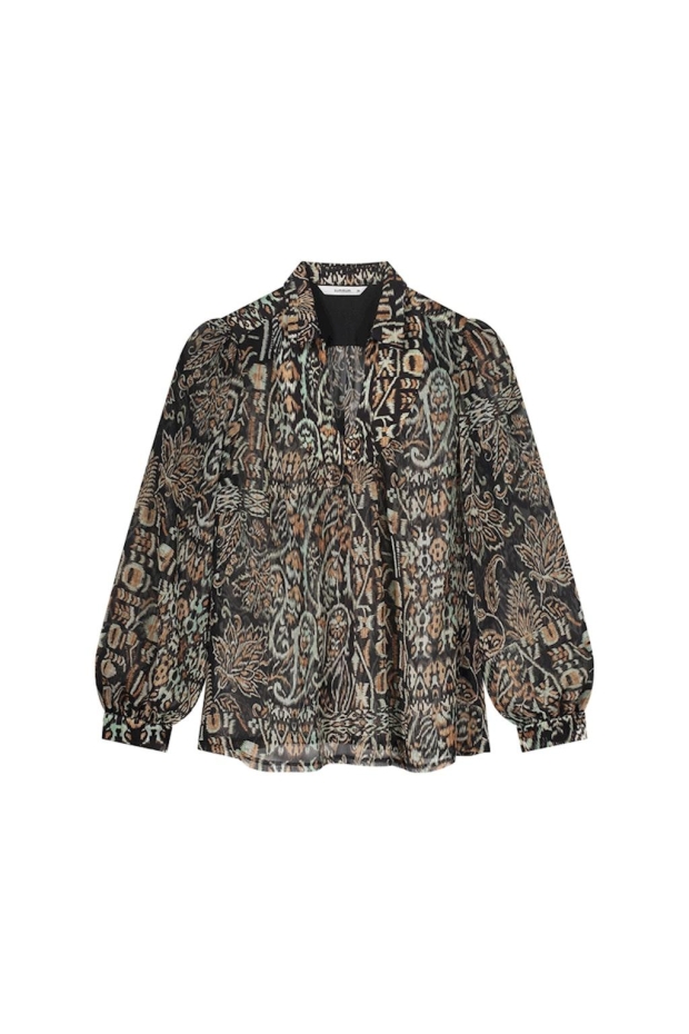 Ontdek de veelzijdigheid en kleurrijke charme van de SUMMUM Top all over print, een must-have voor elke garderobe deze winter. Met zijn lange mouwen en levendige multikleurige ontwerp, biedt deze top een perfecte mix van comfort en stijl voor de modebewuste vrouw.