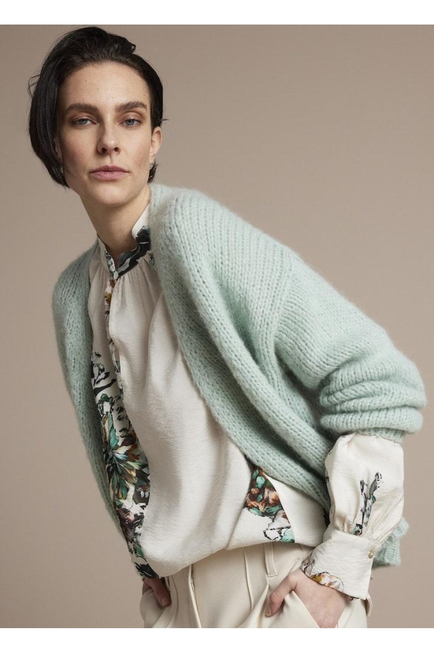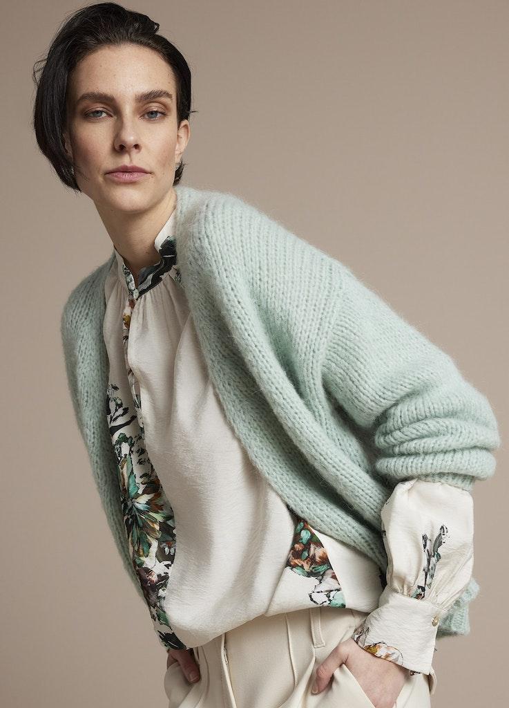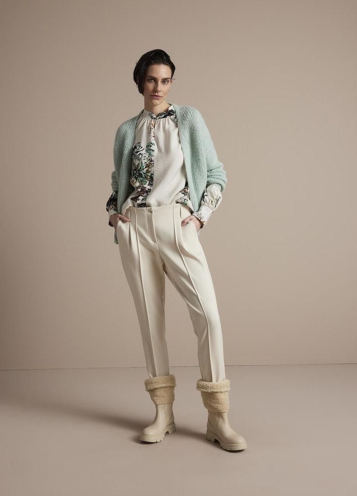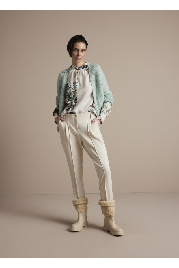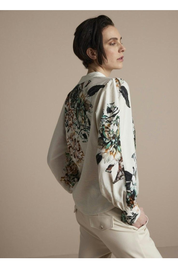 Ontdek de charme van de SUMMUM Top all over flower in de kleur OFF WHITE, een stijlvolle toevoeging aan je garderobe die perfect past bij het winterseizoen. Deze prachtige top, met een uniek bloemendessin en lange mouwen, combineert comfort met elegantie en zorgt ervoor dat je er op je best uitziet, ongeacht de gelegenheid.