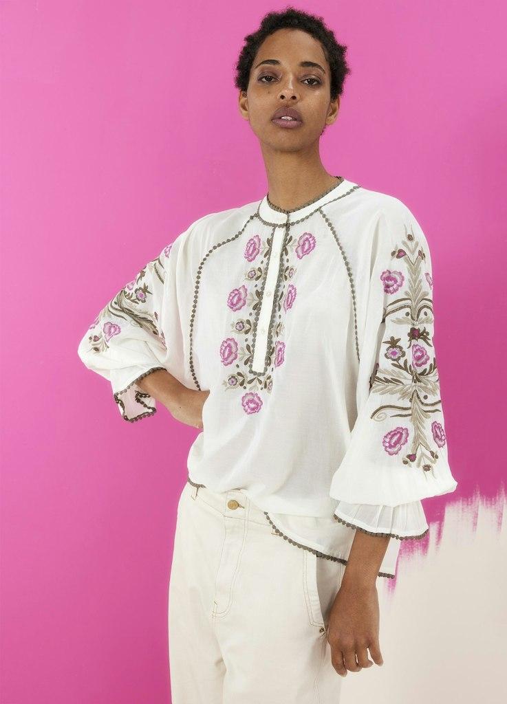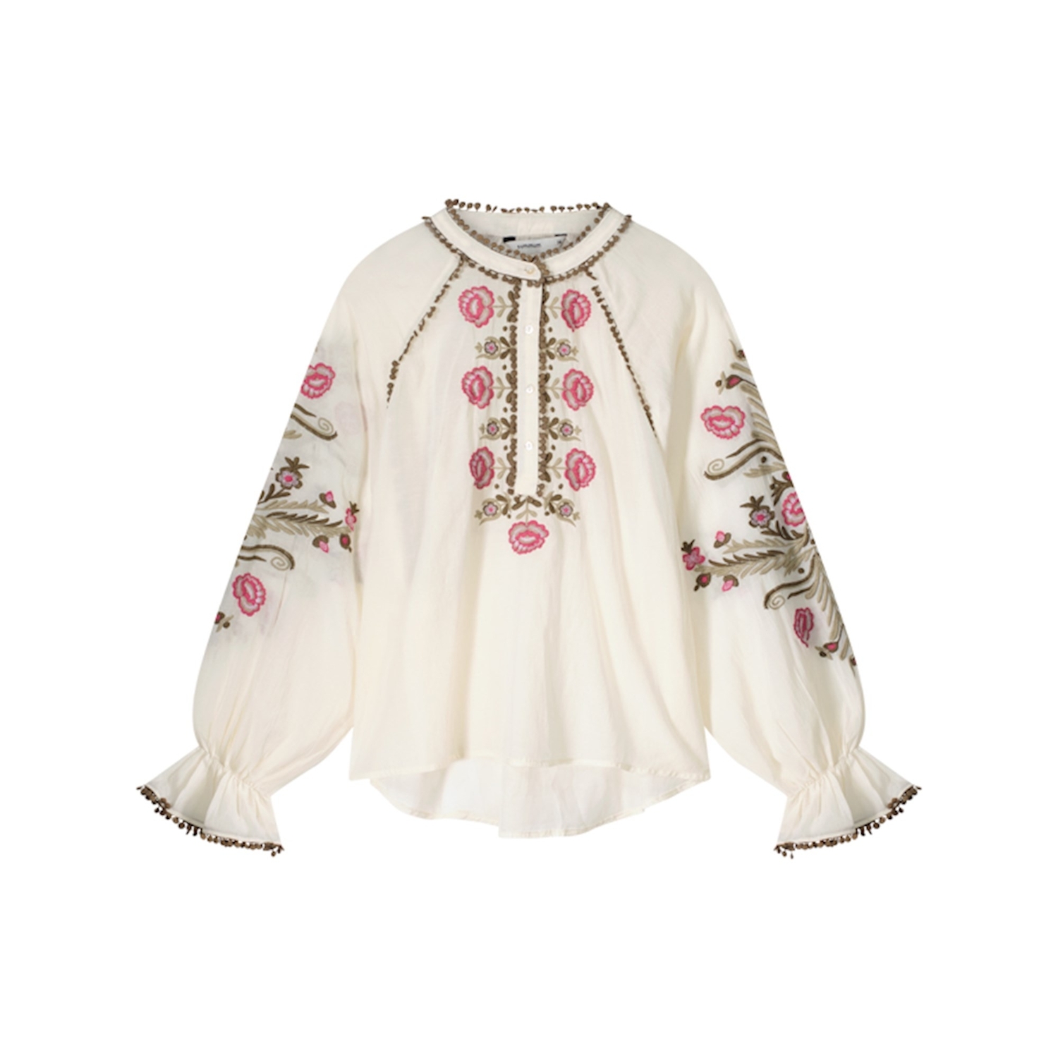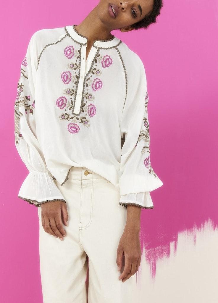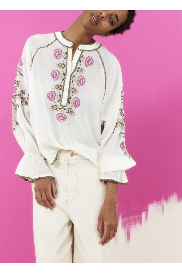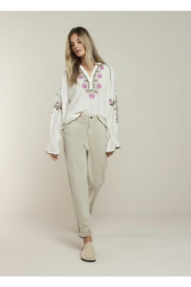 Ontdek de perfecte aanvulling op jouw garderobe met de stijlvolle Top Flower Embroidery van SUMMUM. Deze prachtige top in de kleur Off White is een must-have voor elke modebewuste vrouw. Met zijn lange mouwen en unieke bloemenborduursel is deze top niet alleen ideaal voor elk seizoen, maar ook een statement stuk dat veelzijdigheid en elegantie uitstraalt.