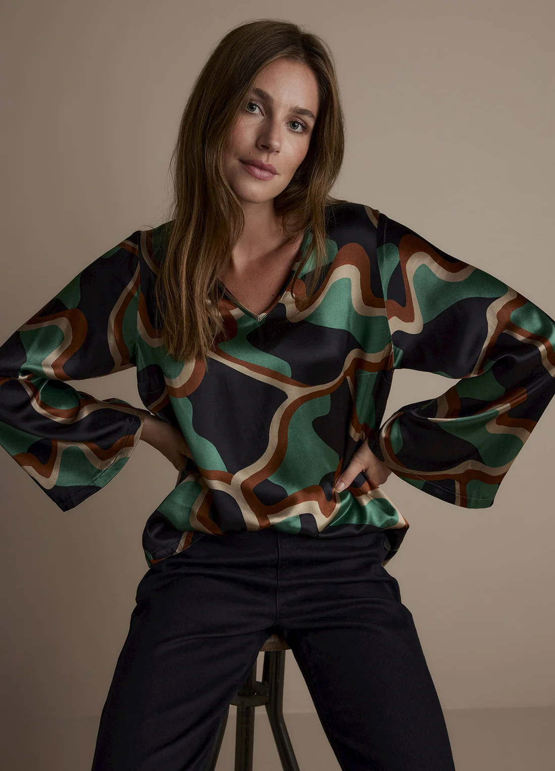 SUMMUM Top long sleeves graphic viscose 120 Multicolour