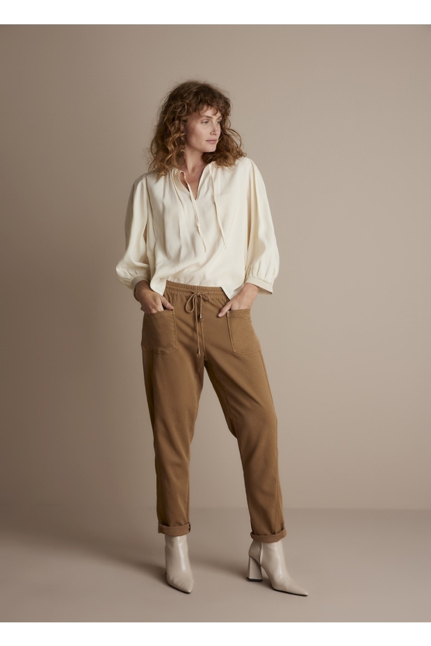 Ontdek de perfecte combinatie van comfort en stijl met onze SUMMUM Jogger fit pants in de elegante kleur zand. Deze broek is speciaal ontworpen voor de modebewuste vrouw die waarde hecht aan zowel uitstraling als gemak. Met zijn unieke lyocell stretch tricot materiaal biedt deze broek een ongeëvenaard draagcomfort, ideaal voor de koudere maanden.