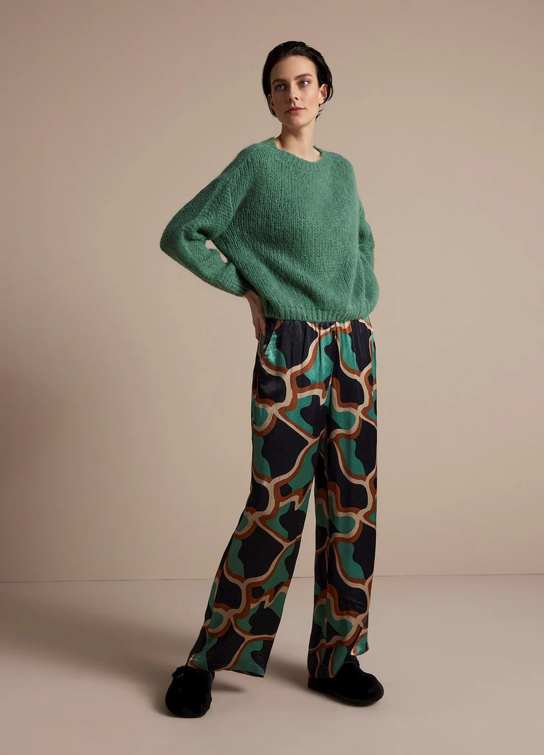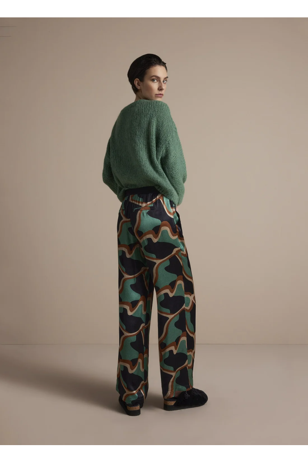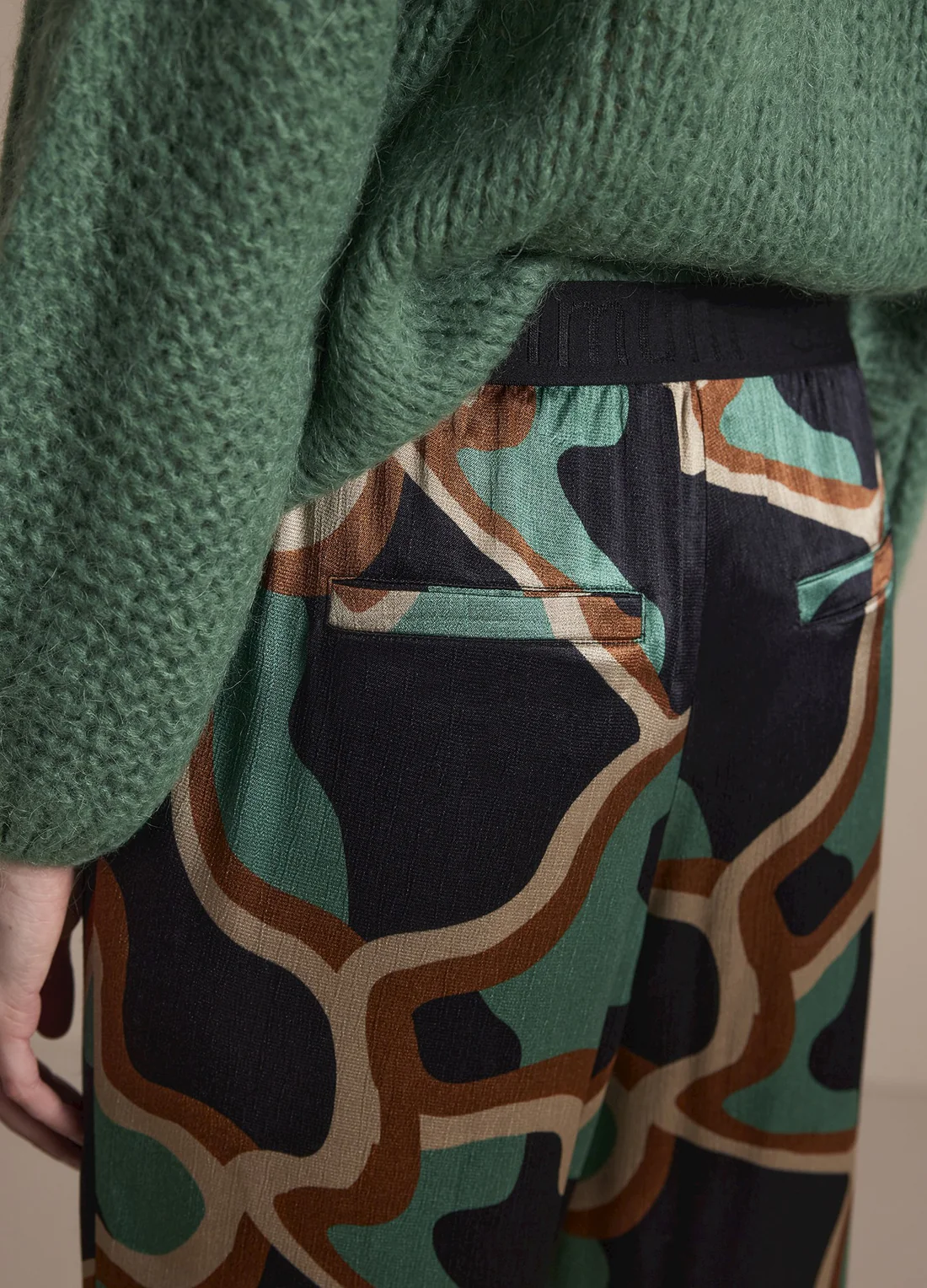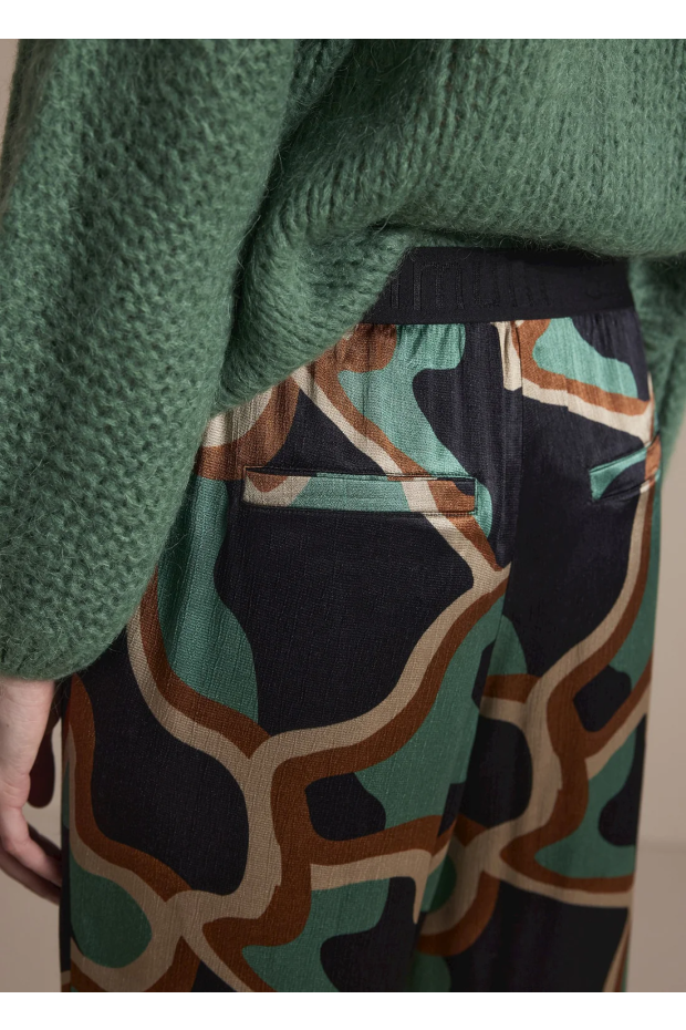 Ontdek de veelzijdigheid en stijl van de SUMMUM Trousers graphic viscose, een perfecte aanvulling op je wintergarderobe. Deze broek, uitgevoerd in een levendige multikleur, biedt een unieke combinatie van comfort en modebewustzijn voor de moderne vrouw.
