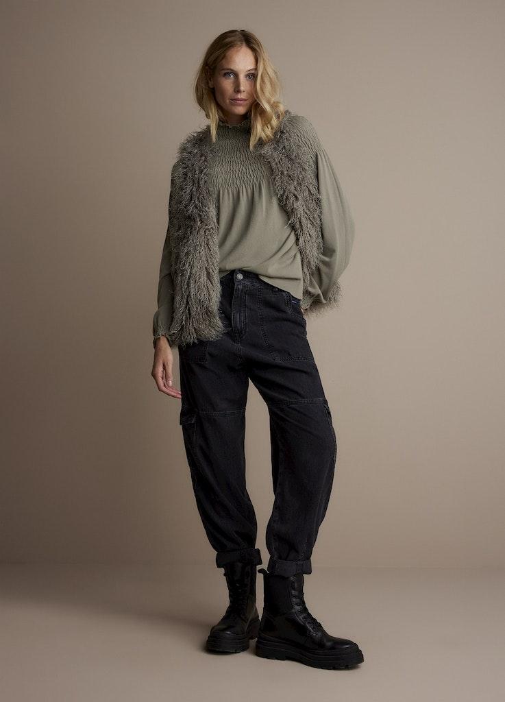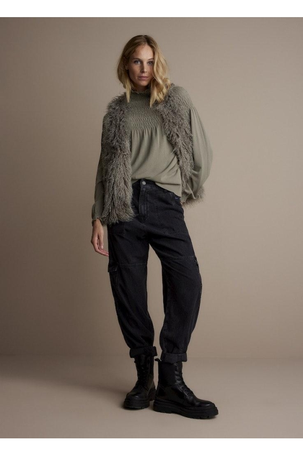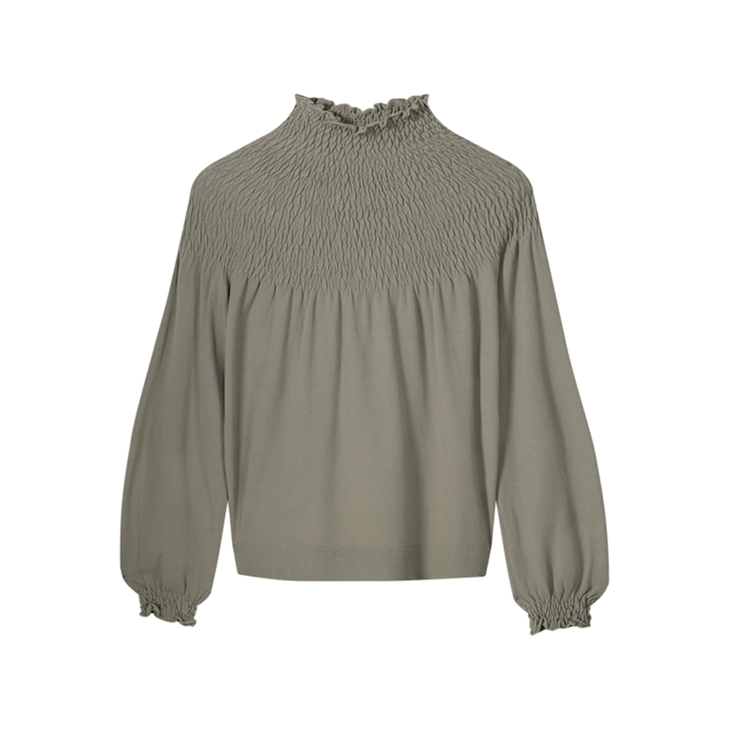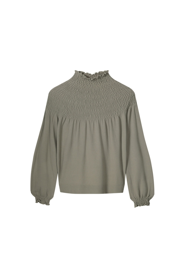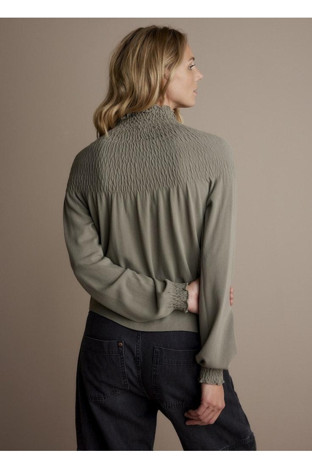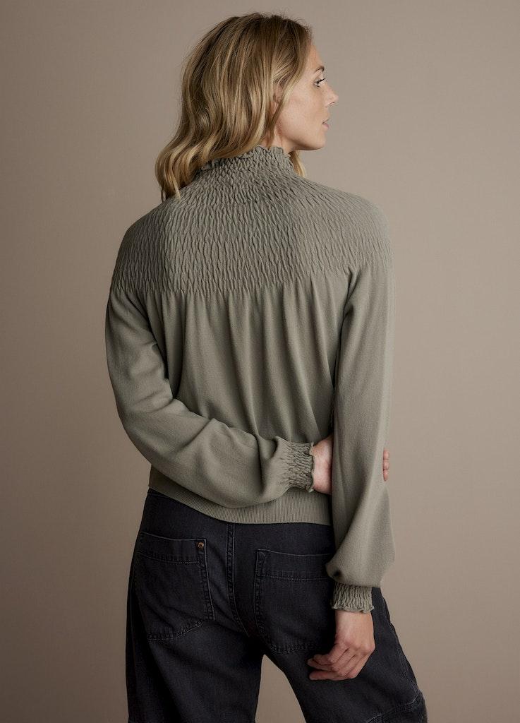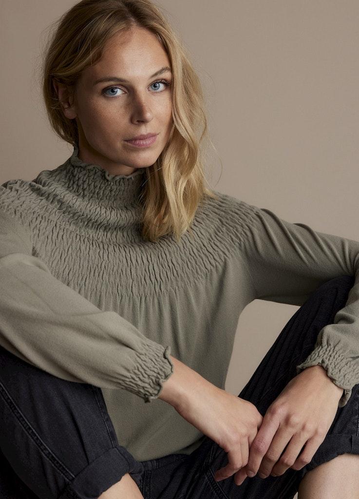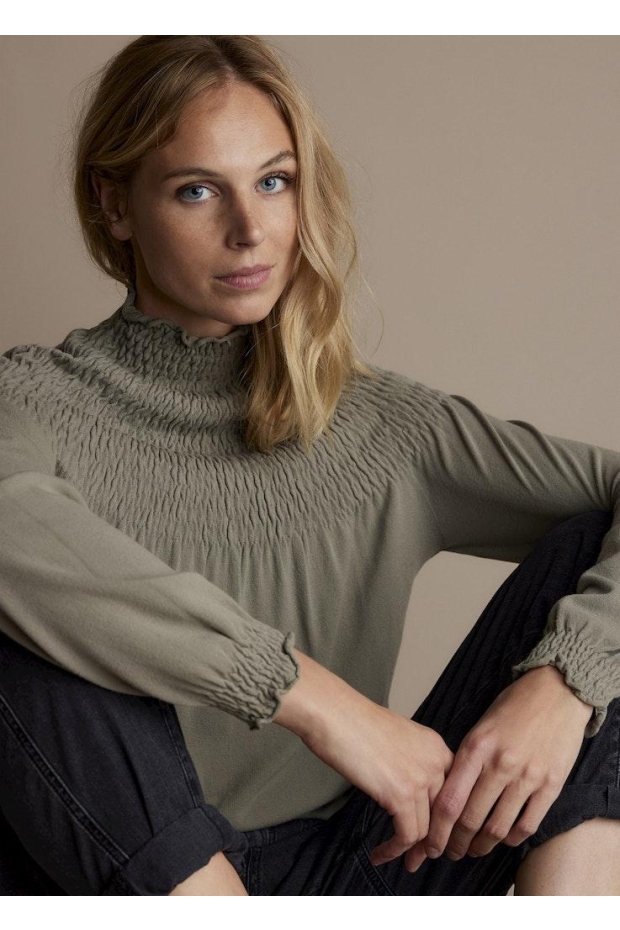 Maak kennis met de stijlvolle en comfortabele Smocked sweater basic knit van SUMMUM, perfect voor de koudere dagen. Deze prachtige sweater in de kleur zand is een must-have voor elke garderobe en biedt een combinatie van mode en functionaliteit.