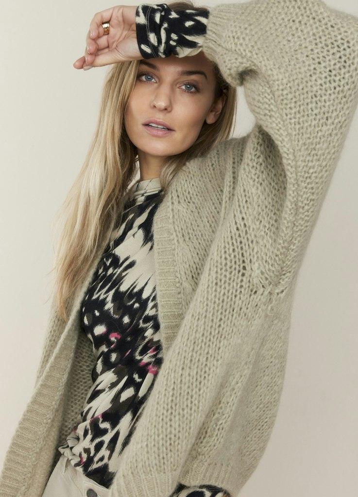 Ontdek de perfecte aanvulling op jouw wintergarderobe met de Oversized cardigan mohair blend knit van SUMMUM. Deze stijlvolle cardigan, uitgevoerd in een rustgevende groene tint genaamd Frosted sage, biedt een combinatie van comfort en elegantie die elke outfit compleet maakt. Speciaal ontworpen voor de modebewuste vrouw die waarde hecht aan kwaliteit en stijl.