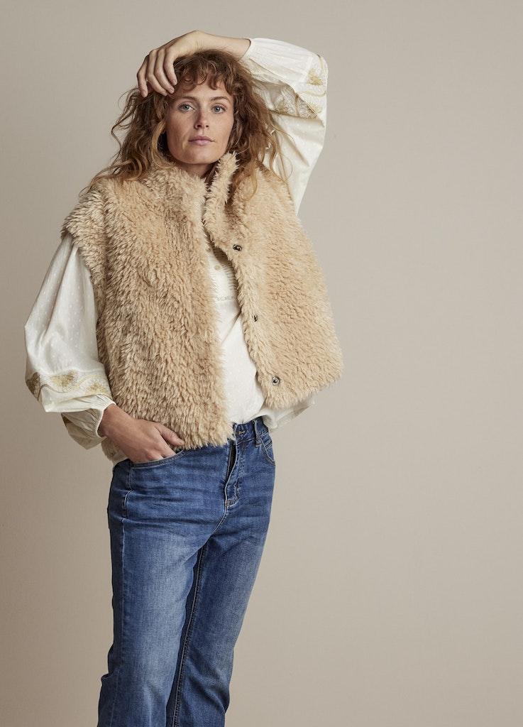 Ontdek de stijlvolle warmte van de SUMMUM Gilet Teddy in een prachtige off white kleur. Dit damesvest is de perfecte aanvulling op je wintergarderobe, met een focus op comfort en modebewustzijn. Laat je omhullen door de zachte, knuffelbare textuur en geniet van een ongeëvenaarde stijl dit seizoen.