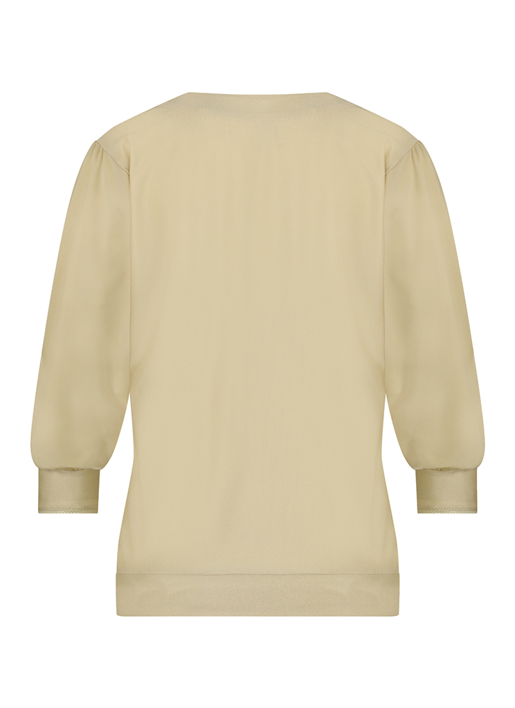 Ontdek de perfecte aanvulling op jouw zomergarderobe met de stijlvolle ZIP73 top in een prachtige champagnekleur. Deze top, ontworpen voor de modebewuste vrouw, combineert moeiteloos comfort met elegantie, waardoor het een must-have is voor elke gelegenheid deze zomer.