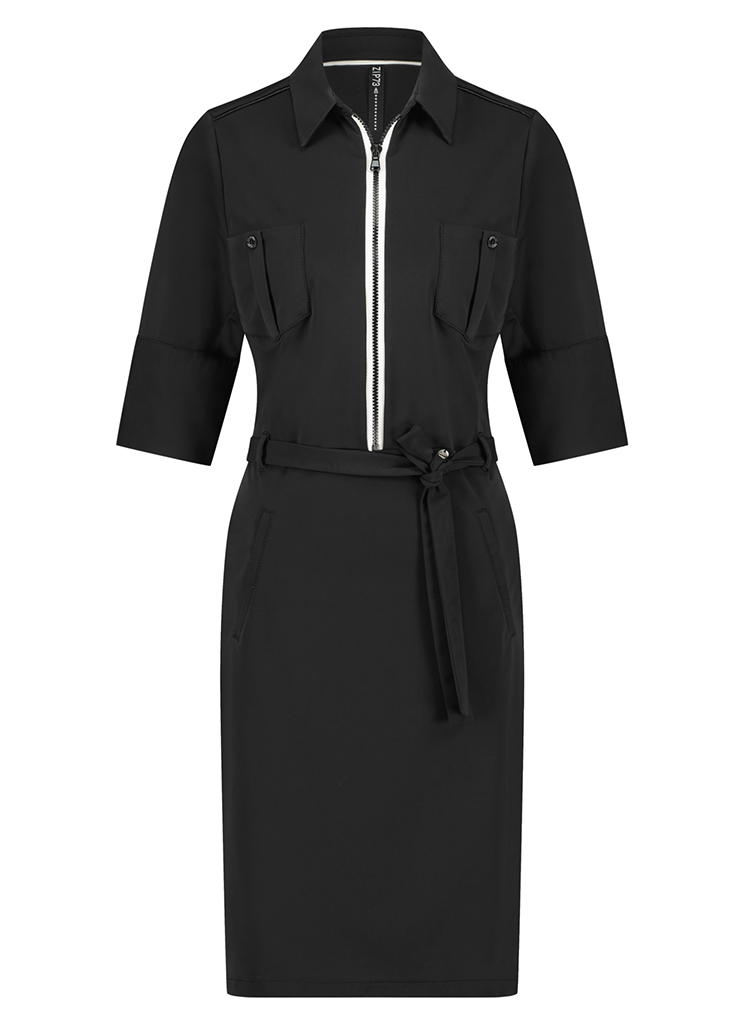 Maak kennis met de stijlvolle en veelzijdige jurk van ZIP73, perfect voor elke zomergelegenheid. Deze zwarte jurk, met zijn unieke ritsdetail, combineert comfort met elegantie, waardoor het een must-have is voor elke modebewuste vrouw.