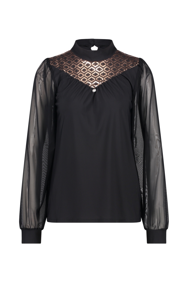 Ontdek de perfecte mix van stijl en comfort met de ZIP73 Top Retroprint in zwart/metallic. Deze top, speciaal ontworpen voor de modebewuste vrouw, combineert een tijdloze retroprint met de moderne elegantie van metallic accenten. Ideaal voor zowel een casual dagje uit als een avondje uit, deze top met lange mouwen is een veelzijdige toevoeging aan je garderobe.