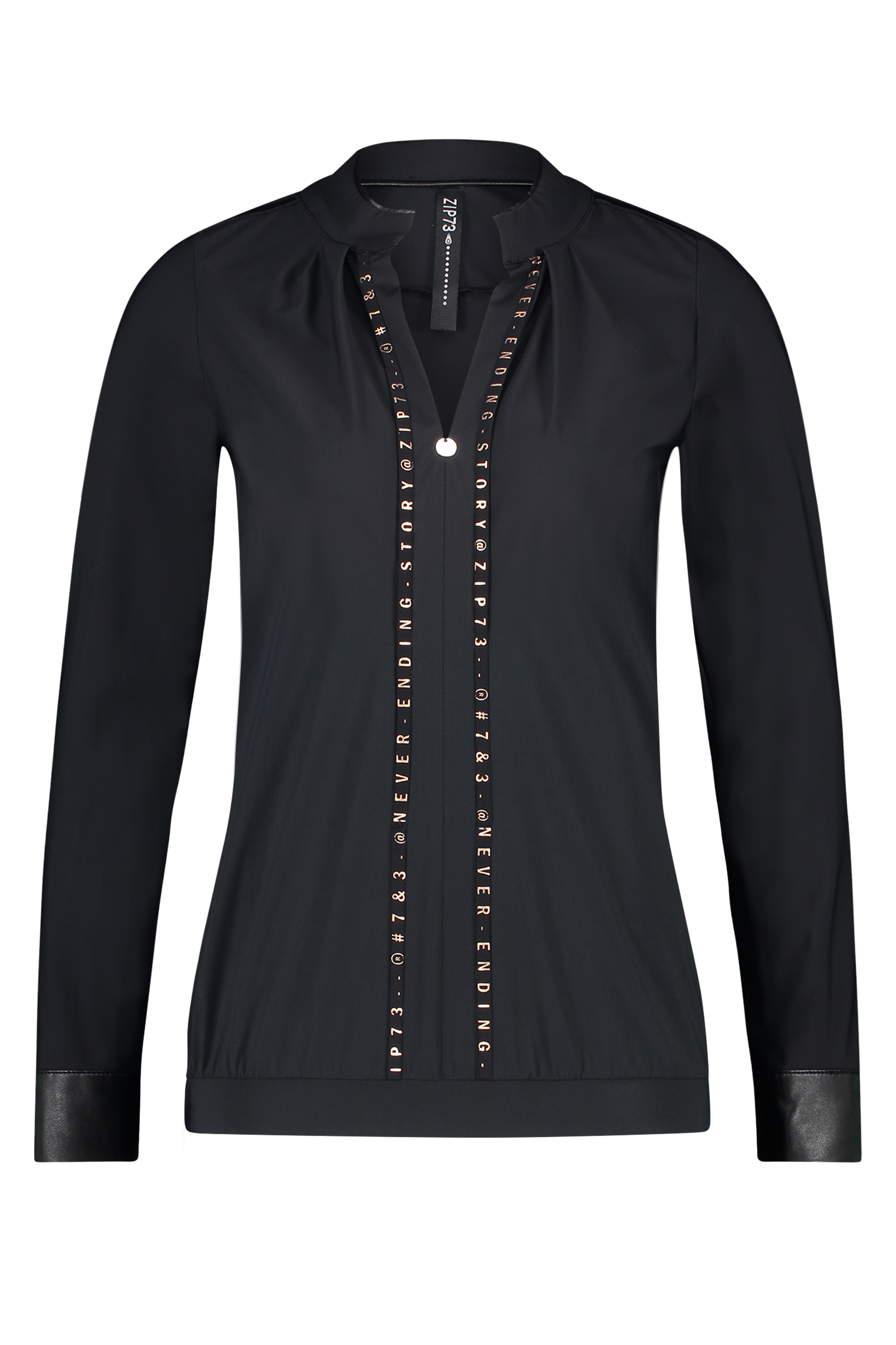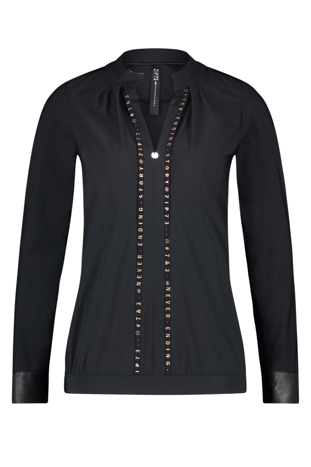 Ontdek de stijlvolle en comfortabele 45001/001 Top Zip73 Tape in tijdloos zwart, perfect voor elke garderobe van de modebewuste vrouw. Deze top van het merk ZIP73 met lange mouwen is een echte must-have voor het winterseizoen. Het elegante zwart in combinatie met subtiele rosé accenten voegt een vleugje klasse toe aan elke outfit.