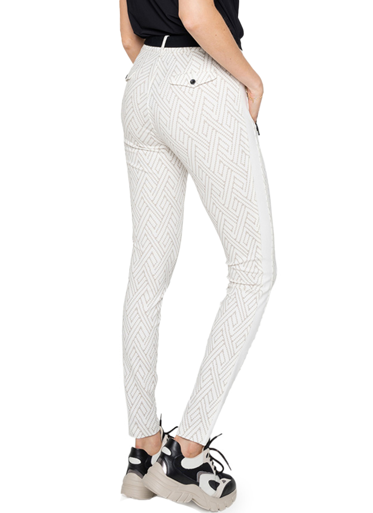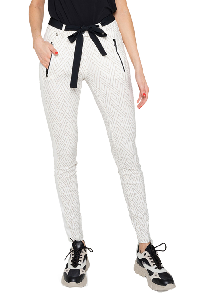 Maak kennis met de stijlvolle en comfortabele broek van ZIP73, perfect voor de modebewuste vrouw. Deze broek, uitgevoerd in een prachtige off-white kleur, is een must-have voor je zomergarderobe. Met zijn unieke ritsjes en printdetails combineert deze broek moeiteloos stijl met functionaliteit.