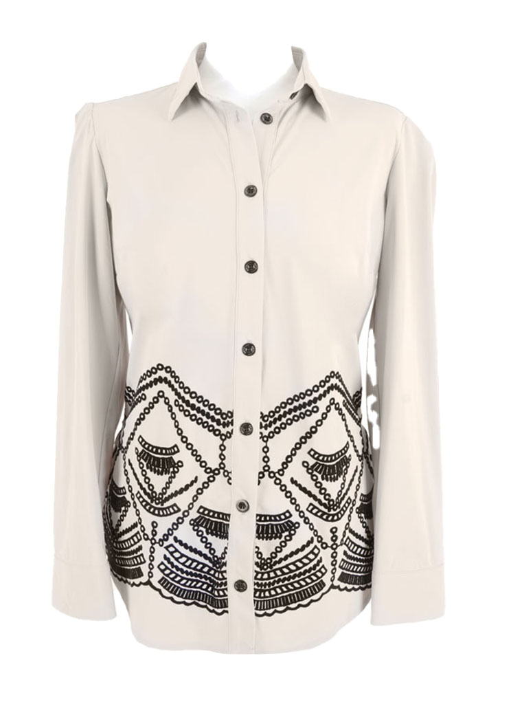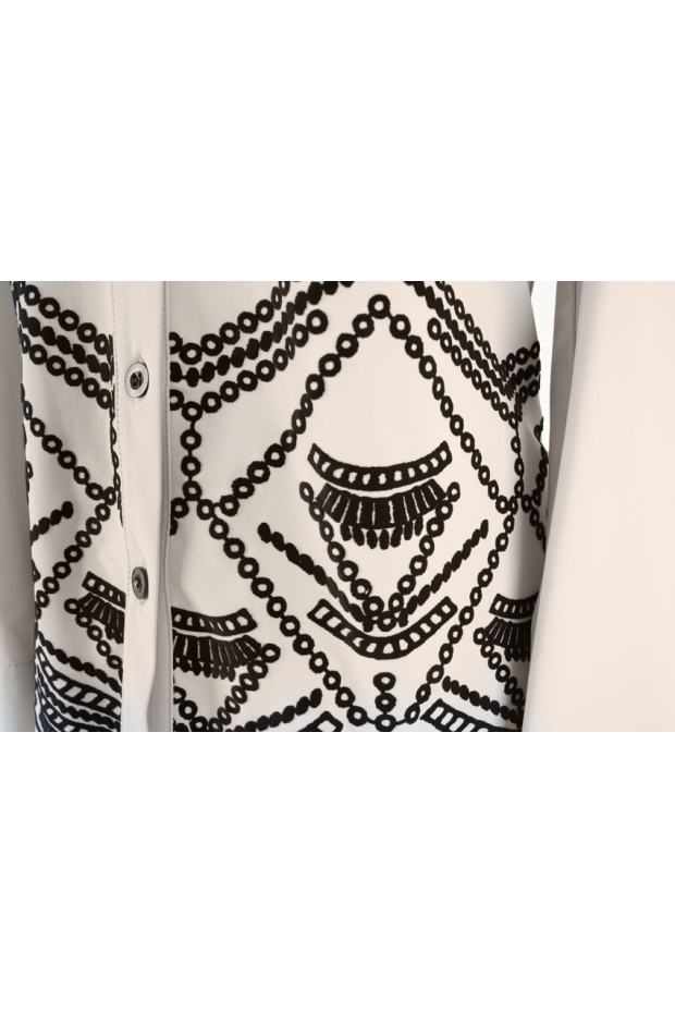 Ontdek de stijlvolle charme van de ZIP73 Blouse Flockprint in de kleur zand, een must-have voor elke modebewuste vrouw. Deze prachtige blouse combineert moeiteloos elegantie met comfort, waardoor het de perfecte keuze is voor zowel een dag op kantoor als een avondje uit. Met zijn unieke flockprint design en subtiele kleurencombinatie van zand en zwart, biedt deze blouse een veelzijdige toevoeging aan je garderobe.