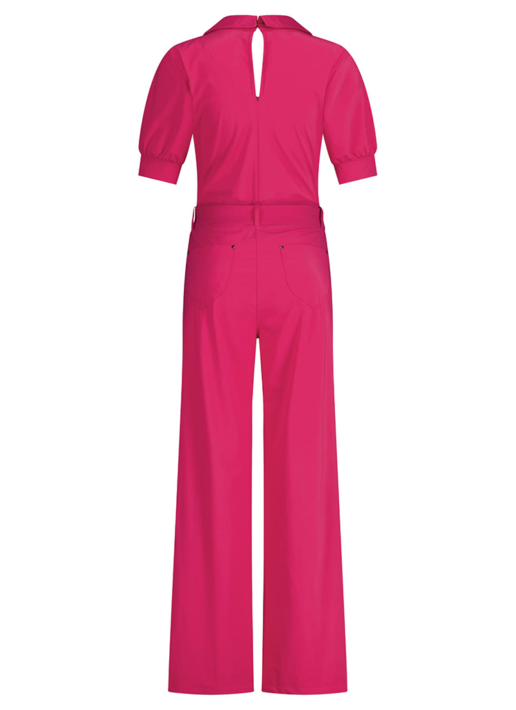 Ontdek de stijlvolle en comfortabele jumpsuit van ZIP73, perfect voor de zomer. Deze prachtige jumpsuit met V-hals in de kleur framboos is een echte blikvanger en biedt een combinatie van elegantie en gemak. Ideaal voor zowel een dag op kantoor als een avondje uit.