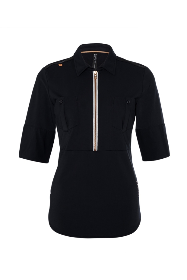 Ontdek de perfecte combinatie van stijl en comfort met de Z24/336/01/001 Top Rits van ZIP73. Deze elegante zwarte top is speciaal ontworpen voor de modebewuste vrouw die waarde hecht aan zowel uitstraling als gemak. Met zijn tijdloze kleur en praktische ontwerp is dit T-shirt met korte mouwen een must-have voor elke garderobe.
