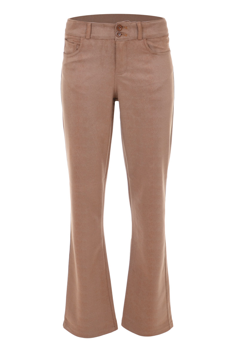 Maak kennis met de perfecte aanvulling op jouw garderobe voor de koudere dagen: de ZIZO CAYDEN broek in lichtbruin. Deze stijlvolle broek, met een unieke kleur die doet denken aan cappuccino met een vleugje slangenprint, biedt zowel comfort als stijl voor elke gelegenheid.